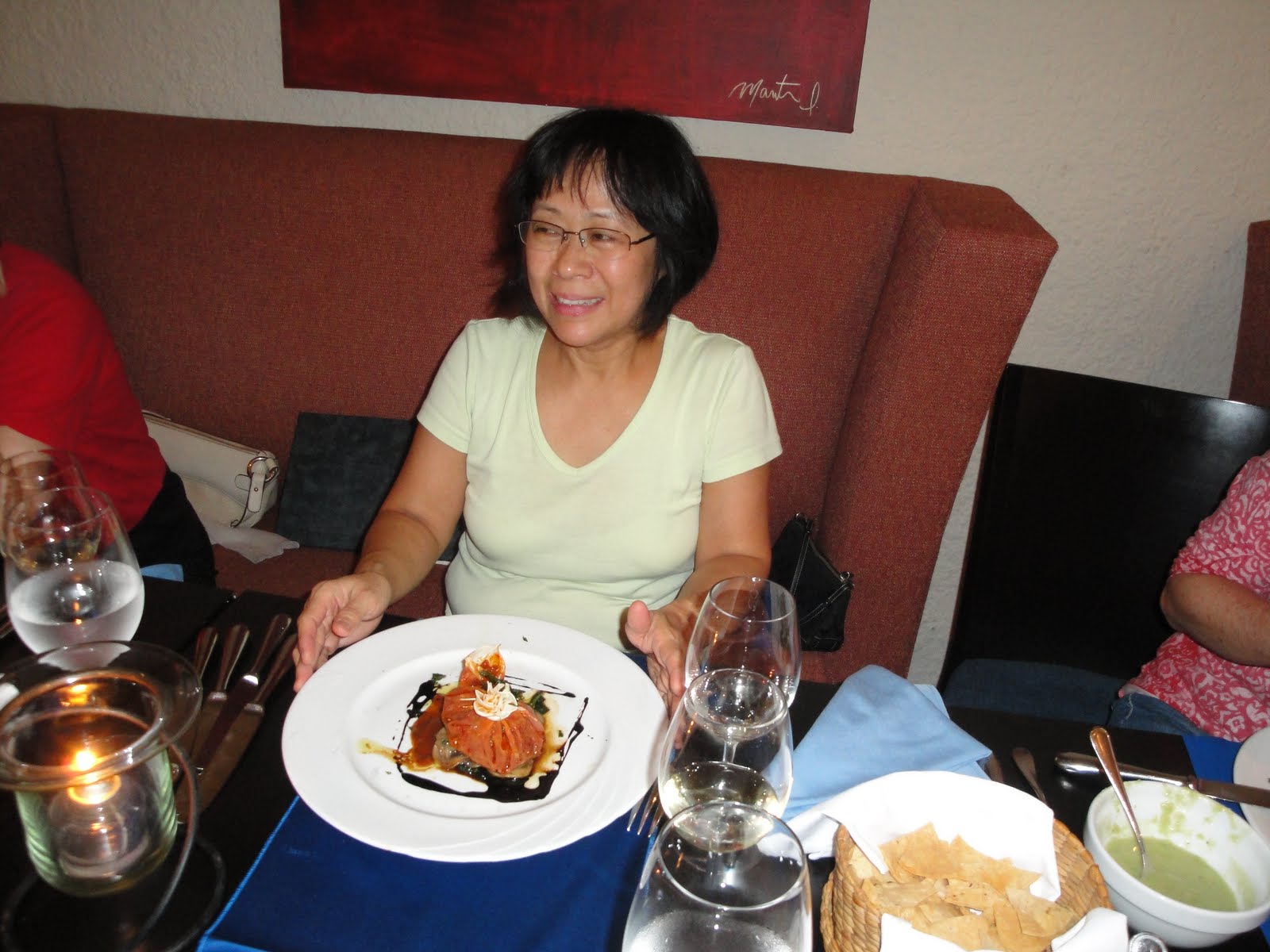 Each of us was then also delighted to take out a token Mexican dollar coin in exchange with a hand-crafted candle carefully designed and made by Ngoan Nhu and husband. What an impressive craftsmanship! The evening started with exciting talks and ended with a nice dinner at the hotel restaurant. Thanks to Cuong Ly and Tuyet Nhi for buying the group fine wine for the celebration. By the time we finished our dinner, we were all tired since we had very little sleep, if any at all, in the past 24 hours. We decided to head back to our hotel room for a shower and rest at close to mid-night.